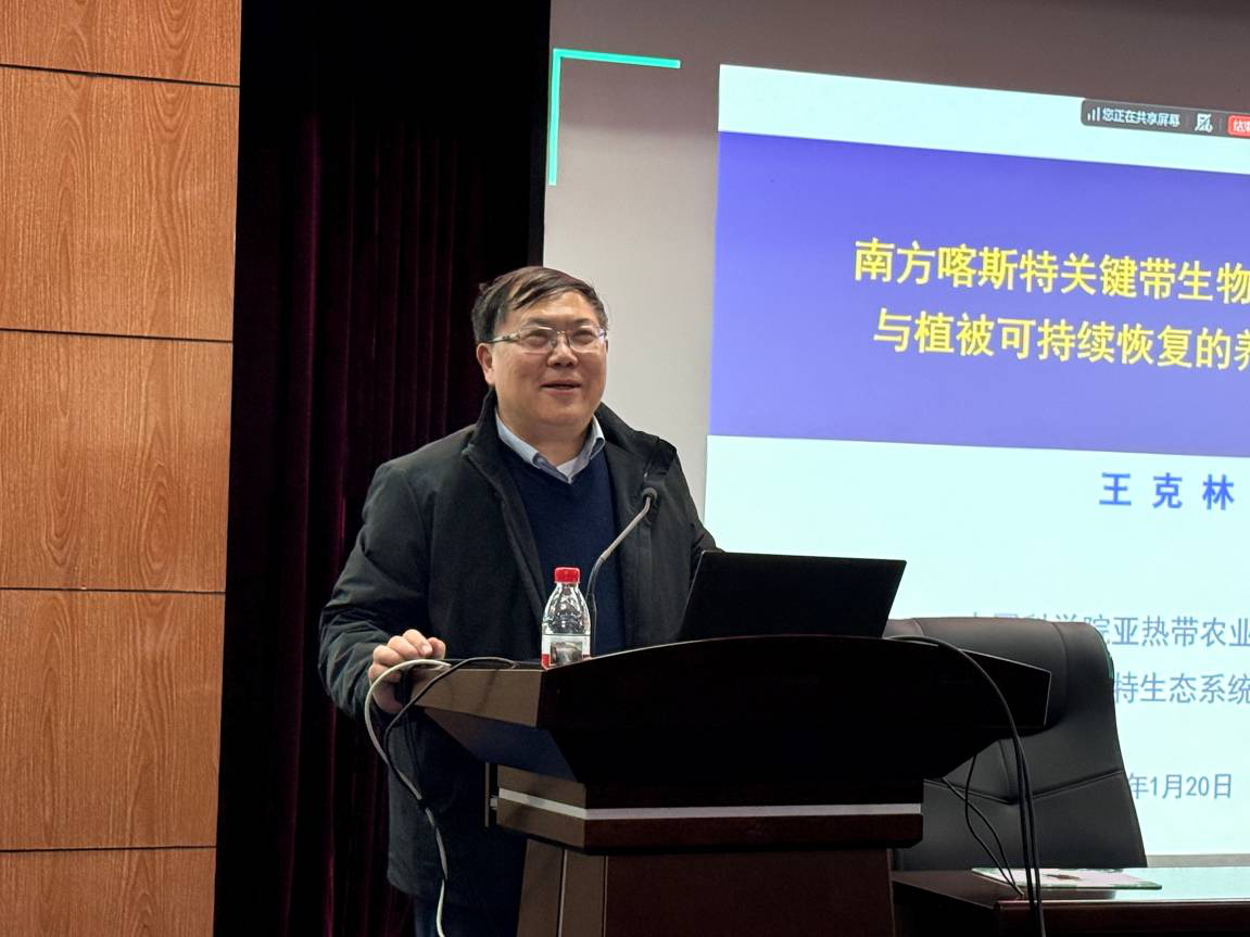 1月20日,应中国科学院城市环境研究所邀请,中国科学院亚热带农业生态研究所王克林研究员来所访问,并作了题为“南方喀斯特关键带生物地球化学过程植被可持续恢复的养分水分保障”的学术报告,报告由研究所党委副书记郑华研究员主持。