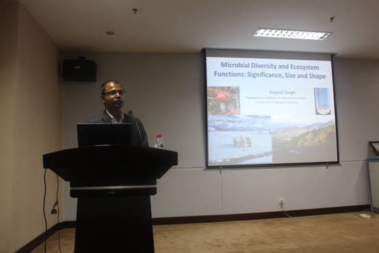 5月19日-6月18日,应中国科学院城市环境与健康重点实验室和姚槐应课题组邀请,澳大利亚西悉尼大学的Brajesh Singh教授访问城市环境研究所,并于5月27日向全体师生做了题为“Linking microbial diversity to ecosystem functions: shape, size and significance”的报告,并热情回答了在场师生的提问,现场学术交流气氛浓烈。访问期间,Brajesh Singh教授将与相关研究组的科研人员就“全球气候变化对地下生态系统元素循环的影响效应及微生物机制”这一课题进行深入讨论。