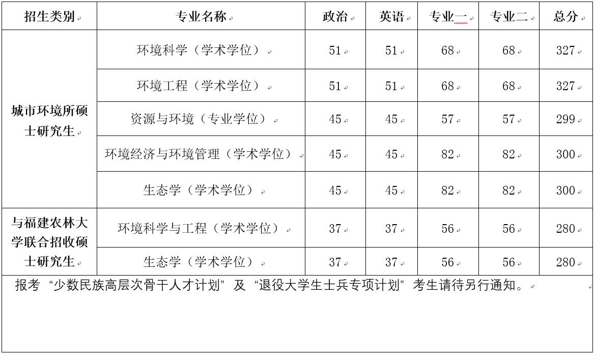 注:请符合上述分数线的一志愿考生于3月19日16:00前致电研招办(0592-6190967)进行确认,可以参加城市环境所2021年硕士研究生入学考试复试阶段考核。相关复试工作安排请关注研究所研招办的另行通知。