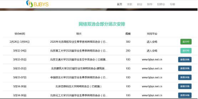 各位预毕业生: 现转发中国科学院大学网络双选会的通知,详情如下: 中国科学院大学网络双选会(3月17日-19日) 本次网络双选会起止时间为3月17日9:00—3月19日17:00,参会单位150家,其中,国有企业64家,机关/事业单位17家,提供招聘岗位1180个,招聘人数高达13308人。行业分布:IT|通信|电子|互联网 IT服务(系统/数据/维护)、建筑业工程、交通|物流 /运输、生产|加工|制造 医药/生物工程、能源、环保、教育/培训/院校、文化、娱乐、政府|非盈利机构 学术/科研。学历要求分布在:本科、硕士、博士及博士后 进入北京高校毕业生就业信息网www.bjbys.net.cn 点击首页“北京地区2020届高校毕业生网络双选会”系列活动图片 (如图)