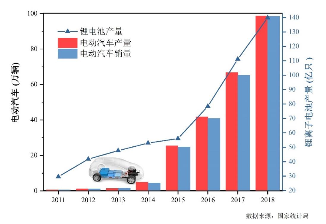 图4 我国电动汽车产销量和锂离子电池产量(来源:中科院城市环境研究所付明来组)