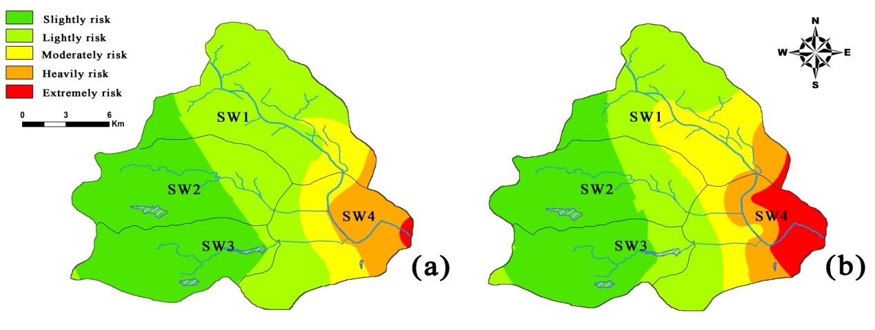 图6 溶解有机物生态风险图 (a)雨季。(b)旱季 (Tang et al., 2020)