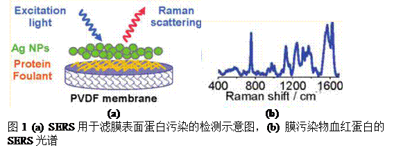 膜技术如微滤、超滤、纳滤、反渗透等正得到越来越广泛的应用,然而,膜在运行过程中出现的膜污染严重制约了该技术的发展,不仅引起膜通量和分离性能下降,而且污染后膜的清洗和更换也大大提高了运行成本。发展一种能够实现膜污染的早期诊断、过程跟踪、以及不同物质膜污染能力鉴别的检测手段对深入了解膜污染过程,控制和减缓膜污染的发生至关重要。为实现这一目标,该研究组发展了基于表面增强拉曼光谱的新型膜污染检测技术。