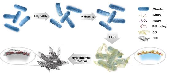 图1. 生物Pd-Au合金/GO催化剂材料的制备
