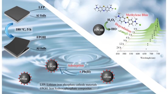 图1 磷酸铁锂电池制备羟基磷酸铁用于吸附重金属铅和芬顿催化降解亚甲基蓝