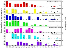 研究团队在海岛选取四个不同类型站点开展大气PM2.5季节性采样,同步观测其他空气污染物和气象条件,旨在探明东亚季风和海洋排放对海岛大气PM2.5污染来源和传输机制的影响。结果表明:从正交矩阵因子模型(PMF)分析结果看,冬夏季大气PM2.5各贡献源的占比明显不同。其中,夏季海洋排放对PM2.5贡献占比达到43%,明显高于冬季;冬季PM2.5主要以二次气溶胶贡献(53%)为主,夏季二次气溶胶的占比仅为12%。冬季硫酸盐氧化率远低于夏季,但由于海盐硫酸盐对海岛大气二次无机气溶胶具有重要贡献,导致冬季的非海盐硫酸盐浓度接近夏季。从气团后向轨迹分析可以看出,海岛大气PM2.5受区域传输所带来的老化气溶胶影响,冬季大气PM2.5组分特征主要受大陆气团的影响,而夏季PM2.5则显现出海洋排放的特征。该研究结果为深刻认识复杂气象条件下海岛地区大气PM2.5的污染特征和来源机制提供了科学依据。