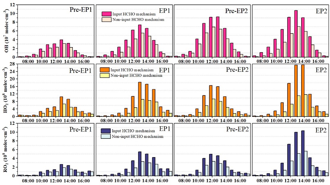 近日,中国科学院城市环境研究所陈进生研究团队在大气科学领域权威学术期刊《Atmospheric Chemistry and Physics》发表题为Exploring the amplified role of HCHO in the formation of HMS and O3 during the co-occurring PM2.5 and O3 pollution in a coastal city of southeast China的研究论文。该论文基于大气环境观测超级站开展大气污染物、光化学参数和气象因子等实时在线观测,结合基于观测盒子模型RACM2、CAPRAM 3.0 和MCM机制,阐明了大气O3和PM2.5双高污染过程甲醛HCHO对羟基甲磺酸盐(HMS)的生成的影响,揭示了东南沿海地区HCHO对大气氧化能力、自由基化学和O3生成的影响机制。