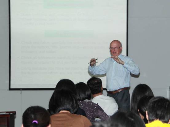 报告中,Smith教授系统地讲解了英文科技论文写作的方法和注意事项,着重对中国科技论文作者经常出现的问题进行了介绍,并回答了与会科研人员提出的问题。