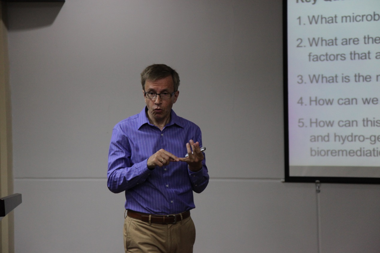 Max Häggblom教授分别做了厌氧环境条件下微生物对MTBE代谢降解行为、对PCBs和Dioxins脱卤行为以及对As、Se的氧化还原行为等研究报告,从研究背景、实验设计、实验结果与解析、内在机制推导与验证等角度,诠释微生物在污染物生物地球化学循环中的重要作用,并从中获取相关研究内容的方法论。