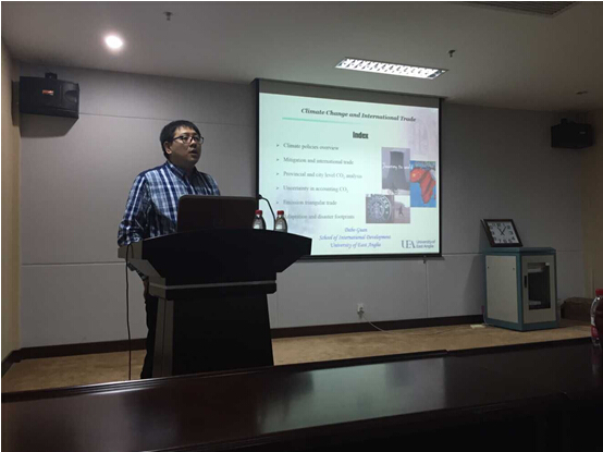 关大博做了题为“Climate Change and International Trade”的学术报告,着重介绍了全球气候变化对当今世界政治,经济和贸易的影响,以及城市规模与二氧化碳排放量的关系等。报告现场气氛热烈,吸引了大批师生交流学习。关大博就气候与经济这一议题与现场观众进行了亲切的交流和指导,并在会后参观了中国科学院城市环境研究所的园区及实验楼。