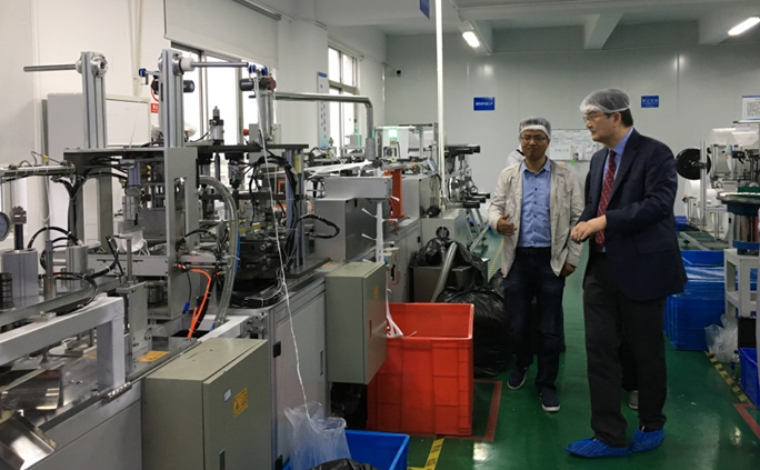 首先,裴教授参观了城市所全尺寸烟气脱硝催化剂活性检测装置、大气环境综合观测站、中科贝思达的口罩生产线以及大气卓越中心相关实验室。裴教授在对城市所大气环境相关科研进展给予高度评价的同时,也表达了希望与相关研究团队展开相关合作的意愿。