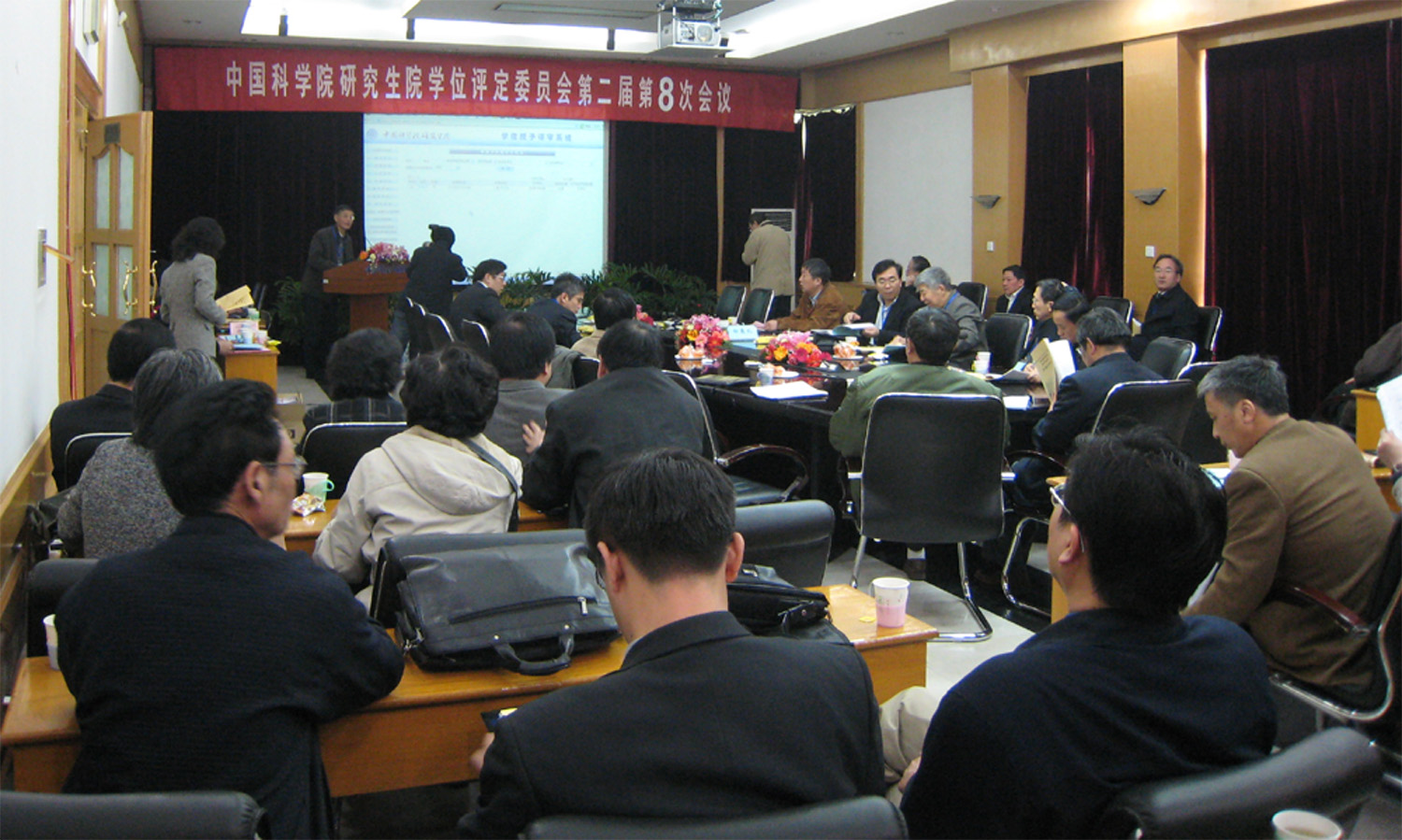 中国科学院研究生院学位评定委员会第二届第8次会议于2007年3月31日在北京玉泉路园区召开,共有52位委员出席了会议。本次会议由研究生院学位评定委员会副主席黄荣辉院士和研究生院副院长马石庄教授联合主持,学位评定委员会副主席杨乐院士、裴钢院士、刘毅局长出席了会议。研究生院学位办主任霍国庆教授介绍了学位授予审核工作情况和博士学位论文抽检情况,研究生院学位评定委员会主席白春礼院士发表了重要讲话。