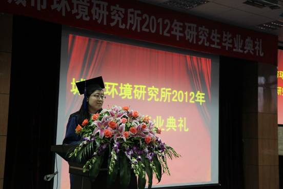 7月4日,城市环境研究所2012届研究生毕业典礼在综合楼报告厅隆重举行。所领导、学位委员会成员、研究生导师出席了典礼,毕业研究生、在所学生及部分职工参加了典礼。毕业典礼由陈少华副所长主持。
