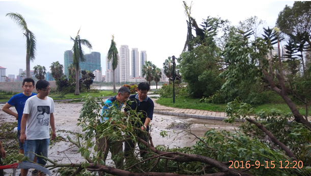9月15日,厦门市遭受到今年全球威力最大的第14号台风“莫兰蒂”的正面侵袭。研究所领导班子高度重视,在台风来临前,及时启动应急预案,组织应急队伍加强值班检查,储备基本生活物资,充分准备,有效应对,确保了人员安全。台风导致大面积停电、停水和通讯中断,对生产生活造成严重影响,园区绿植和建筑门窗等设施受损严重。