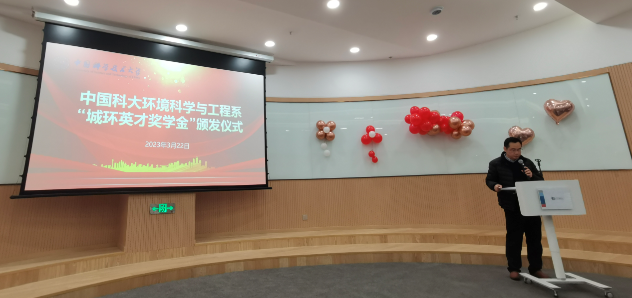 3月22日下午,城市环境研究所与中国科学技术大学(简称“中科大”)“环境科学与工程科技英才班”奖学金颁奖仪式在中科大中校区艺术教学中心举行。城市环境所教育处处长王棠荣、单文坡研究员及教育处业务主管胡冬雪,中科大环境科学与工程系党总支书记张文真、环境科学与工程系副主任谢周清、穆杨、花正双及英才班的全体同学出席了颁奖仪式。签约仪式由谢周清主持。