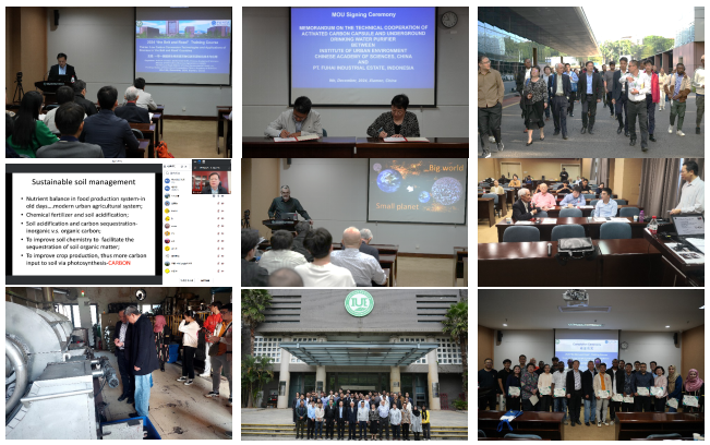 12月9日,城市所汪印研究员主持了开班仪式。首先,城市所郑煜铭副所长为培训班致辞,热烈欢迎来自马来西亚、印度尼西亚、泰国、巴基斯坦、菲律宾、柬埔寨、埃塞俄比亚、中国等‘一带一路’国家的专家和学员,并介绍了举办培训班的背景与意义及研究所的发展历史与研究领域,出席了城市所与印度尼西亚富海工业园区有限公司(PT. Fuhai Industrial Estate)谅解备忘录签约仪式。12月9日-12日,受邀的中国科学院生态环境研究中心主任朱永官院士、城市所Franz Gatzweiler研究员、成都生物研究所吕青阳副教授、斯威本科技大学马来西亚分校Daniel Tan Lee Tung博士、城市所汪印研究员/李杰博士、遗传与发育生物学研究所李晓欣副研究员、城市所邹晓燕副研究员、生态环境研究中心乔敏研究员、浙江科技大学孟俊副教授、南京土壤研究所谢祖彬研究员等专家分别向线上/线下约300名学员作了相关培训讲座。讲座主题包括废弃物管理与土壤健康、城市健康新系统和科学策略、畜禽粪便堆肥技术、马来西亚沙劳越生物质的可持续利用、生物质热解气化炭热电联产技术、农田生态系统养分管理、基于功能和微生物生物炭的土壤污染防治、抗生素抗性基因在土壤生态系统中的传播、生物炭的制备与应用、中国农田生态系统固碳减排等。为了加强学员对废弃生物质资源的循环利用认识,除课堂讲座外,培训班学员分别于9日、11日和12日下午实地参观了大闽食品(漳州)有限公司利用废弃茶渣、咖啡渣等废弃生物质产热电技术、岐北通用净水技术(厦门)有限公司碳基滤芯成型技术和城市所生物质热解炭化中试设备与技术,学员纷纷认真聆听,讨论热烈,纷纷表示课程内容与他们各自国家的实际需求紧密契合,表达了与他们国家相关部门和企业合作的强烈愿望,希望中方尽快回访,深入沟通,尽早形成实质性的合作。