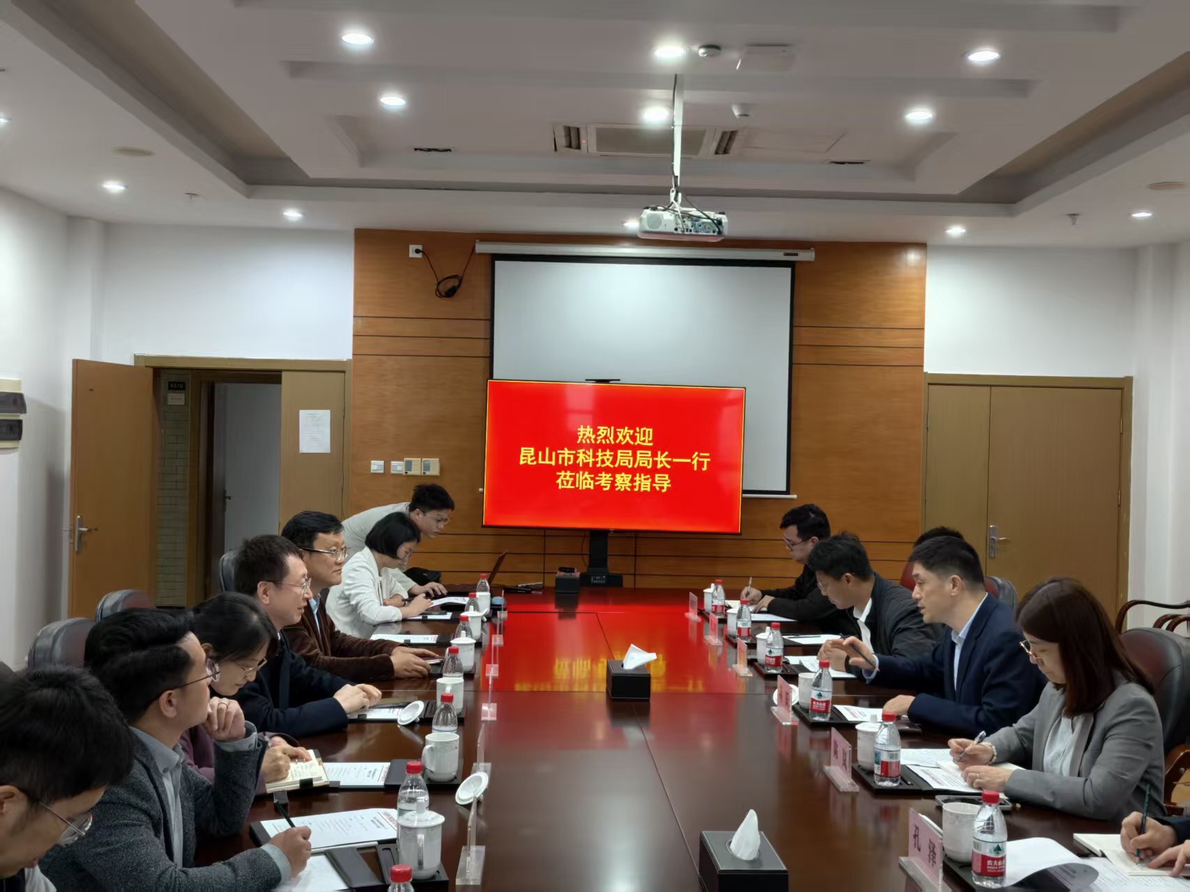 4月16日,昆山市科技局局长蒋跃带队到宁波站考察交流。宁波站副站长刘海宁、肖航,科技合作办公室主任张召基,综合办公室主任朱兵,研究所科技合作处业务主管黄诗鹍,中科鸿景(宁波)环保科技有限公司总经理李要彬,中科同恒环境科技有限公司副总经理陈延兴等共同接待考察组一行,相关科研骨干全程陪同,中科嘉辞(昆山)环保科技有限公司董事长董晓霞线上参会。